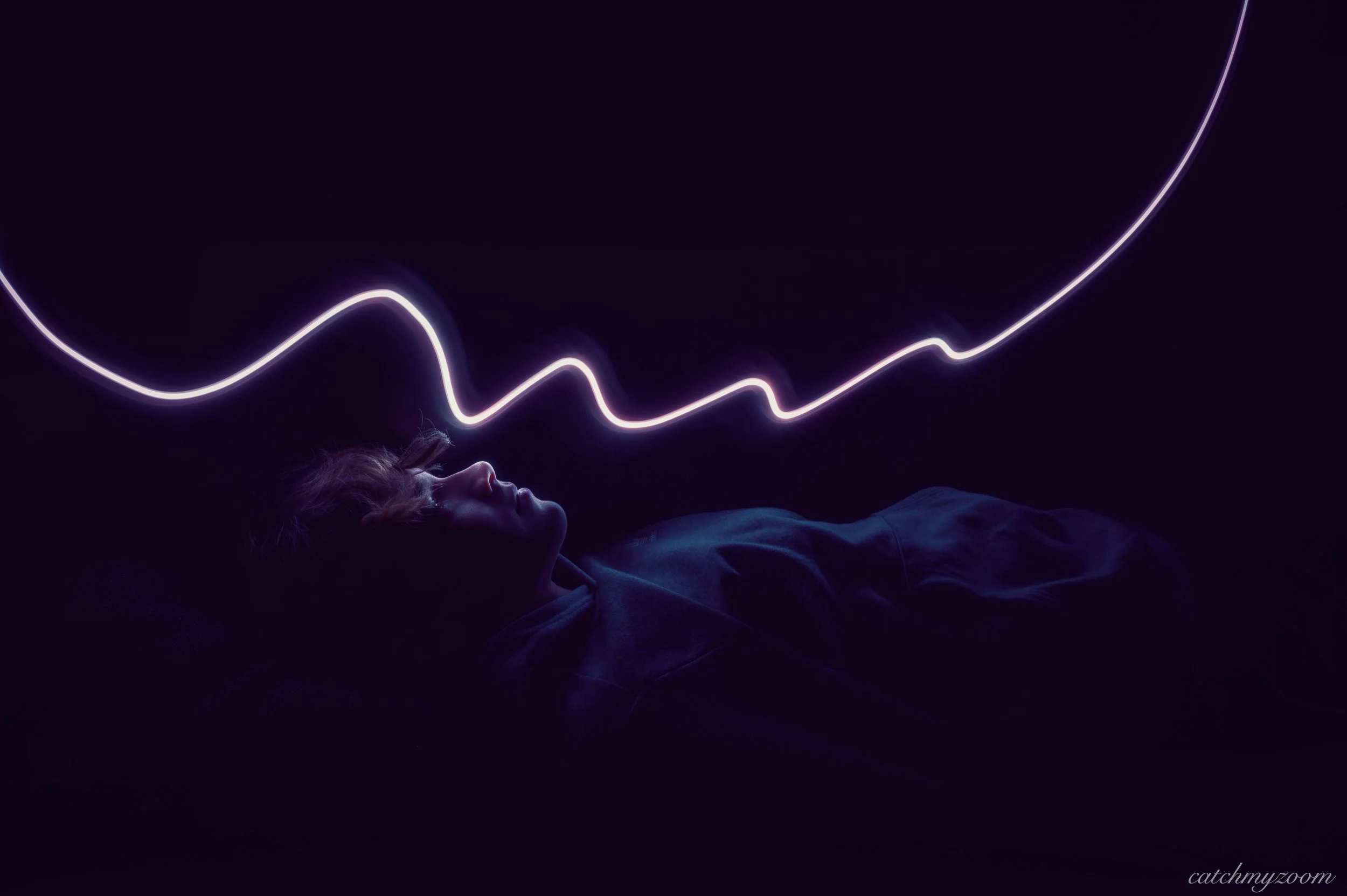 This creative technique is based on setting up a long exposure (a very slow shutter speed). Because the images are taken in dark or a low light environment, a long exposure is crucial to let enough light to reach the camera. I set up my shutter speed for around 10 seconds. I didn’t go for a longer exposure because I was capturing my son and a dog. They would not be able to stay still and as a result they would be very blurry. That was not my aim in this case.