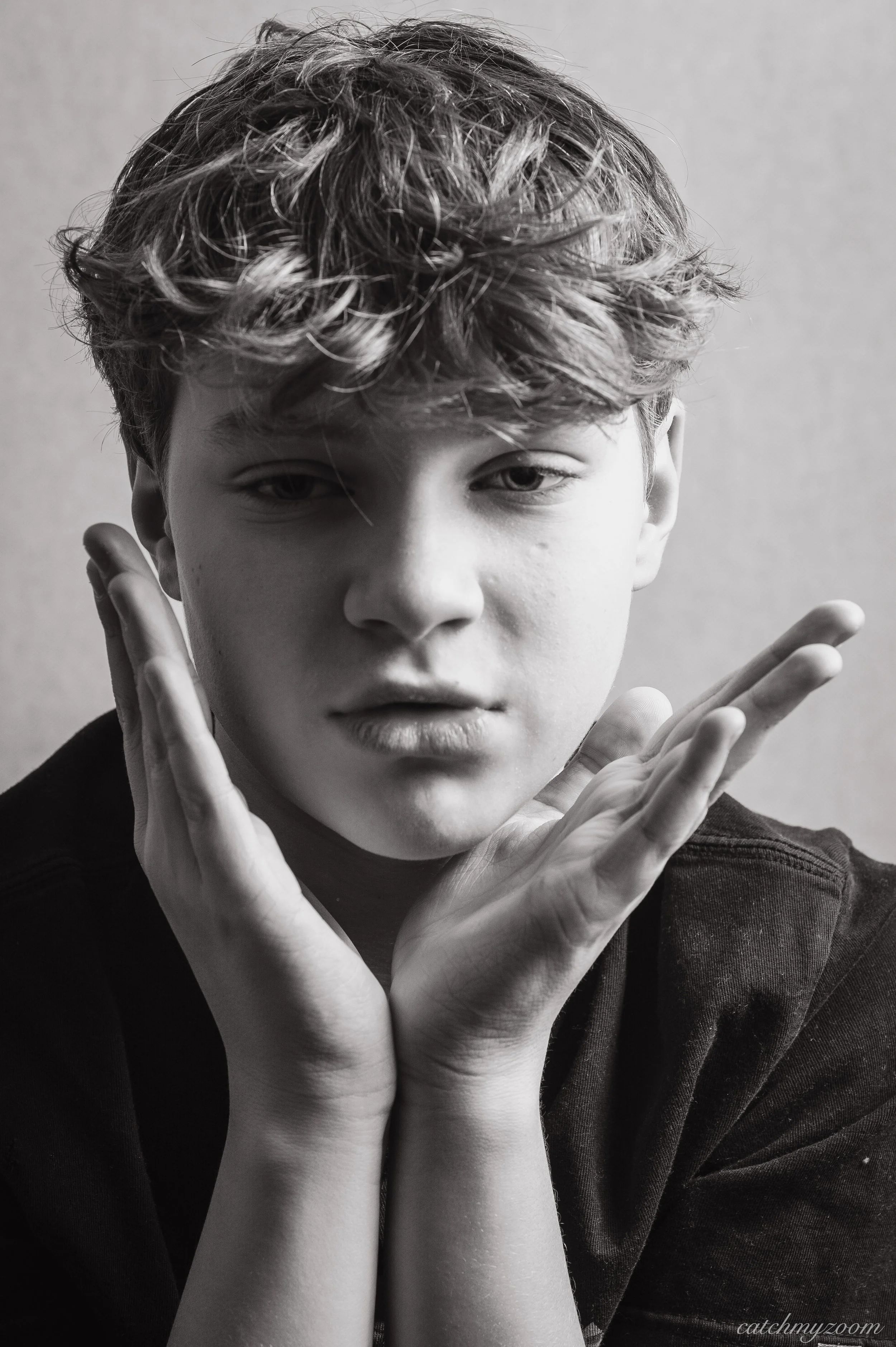 I captured the following images of my son to show different types of lighting. For this home studio I used my camera Nikon Z6, one off-camera speedlight (flash) Nikon SB 5000, a small source of light to highlight the background (wallpapered wall) and umbrella. I created a very soft light to enhance my son’s young age. All images are edited in Lightroom.